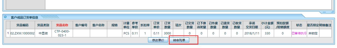 :外购成品可不可以在销售订单中自动转换为采购申购单?要如何操作呢?![]() 可以,参看以下操作,进入点晴ERP系统-》销售管理-》销售订单管理-》销售明细查询: 1、选择需要转的销售订单,点击 查看 2、如果有 新增申购单 的权限,则会出现转申购单按钮。点击该按钮即可以自动复制成为一张新的申购单,在采购管理-》申购管理中就可以找到这个申购单了。 点晴模切ERP更多信息:http://moqie.clicksun.cn,联系电话:4001861886 该文章在 2018/5/10 0:01:08 编辑过 |