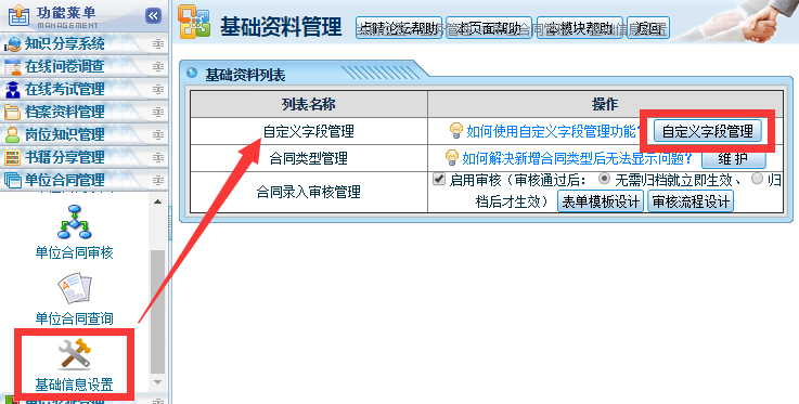 在以上位置找到并点击按钮“自定义字段管理”,设置需要增加的字段: