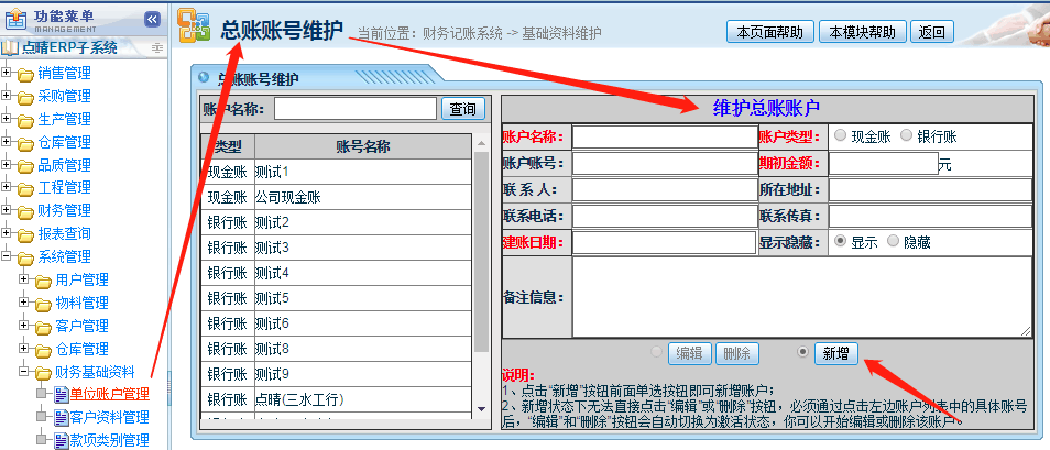 点晴模切ERP系统收款和付款账户录入