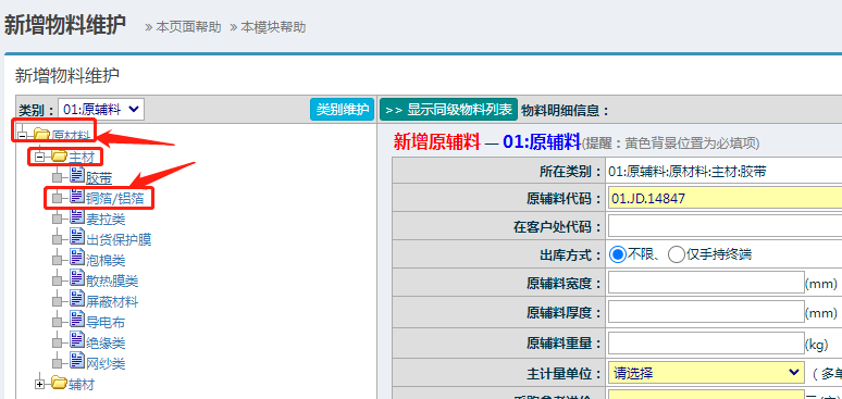点晴模切ERP新增、编辑物料提示本级类别下任有下级类别,在本级下不允许新增类别,请选择下一级类别,什么原因,如何处理?