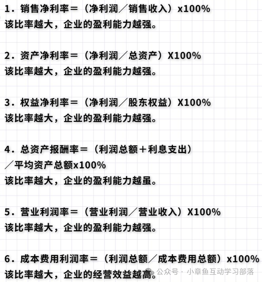 二).盈利能力分析 盈利能力就是公司赚取利润的能力。一般来说,公司的盈利能力是指正常的营业状况。 (一).常用计算公式: