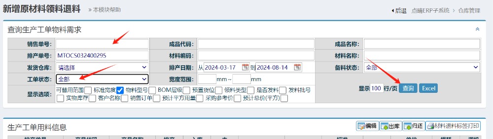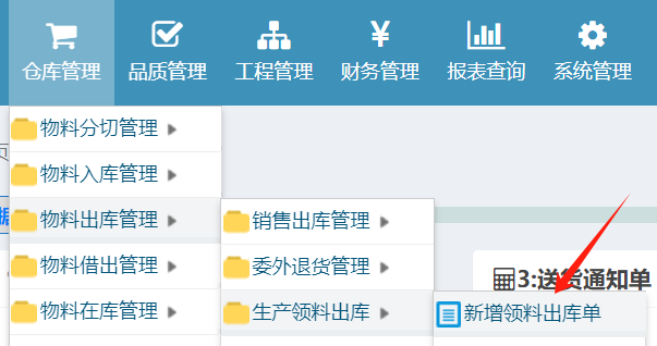 仓库管理-物料出库管理-生产领料出库-新增领料出库单