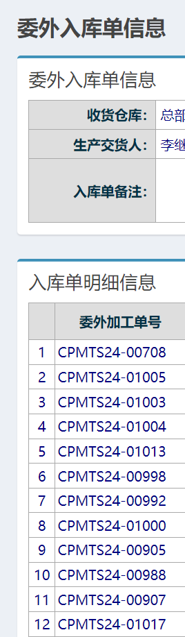 点击查看委外入库单,若有多个单号的就会重复显示