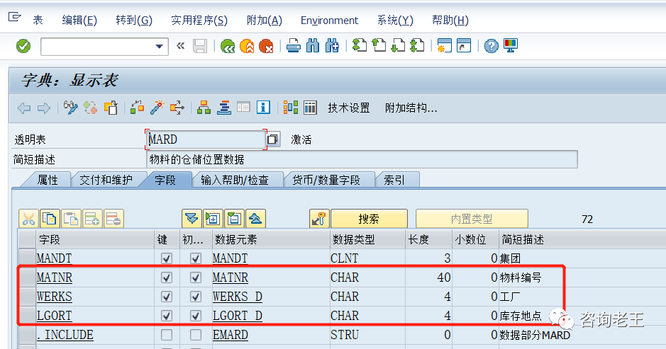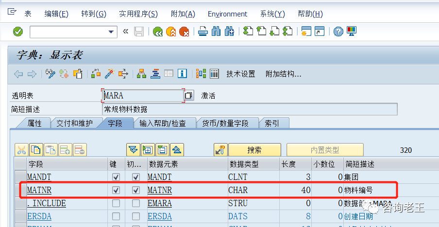 3.工厂数据/存储1视图中的“最小货架寿命”、“总货架寿命”字段在后台表MARA(主键:集团+物料编码),就是在集团级,而不是我们望文生义认为的工厂库存地点层级。通过对这几个字段所在后台表和组织层级的分析,我有两点认识:1.事情的细节中隐藏着魔鬼,在主体和原则之外还有例外,不能想当然的理解,这样会导致混淆错误。2.具体情况要具体分析。像“税分类”这样的字段,SAP设计是按照物料和发货国来区分,但在实施过程中还要分析是否真正满足客户业务需求,还是要具体情况具体分析的。