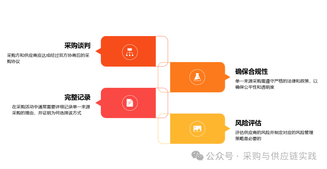 我们在《招标,询比价,单一来源!七种主要采购方式介绍》一文中详细说明了几种主要的采购方式。本篇对其中的单一来源采购进行介绍和阐述。 单一来源采购(Single Source Procurement),是采购活动中经常使用到的一种采购方式,指采购方(如政府机构、企业或其他组织)直接向一个特定的供应商购买产品或服务,而不经过招标或竞争性报价的过程。 一、单一来源采购的定义 单一来源是指采购方仅从一个特定的供应商处购买货物、工程或服务,而非通过竞争性招标或从多个供应商中进行比较和选定。 单一来源采购通常发生在所购买的商品或服务具有唯一性的场景。例如专利产品、定制设计、专有技术或者艺术品,或者在紧急情况下需要进行快速响应。 单一来源通常依赖于一个特定的制造商或者供应商作为某个关键组件或原料的唯一提供方。这种依赖可能会带来供应风险, 比如供应商遇到生产问题、质量控制问题或者遭受自然灾害时,整个供应链可能将会受到影响。 二、单一来源的适用场景
