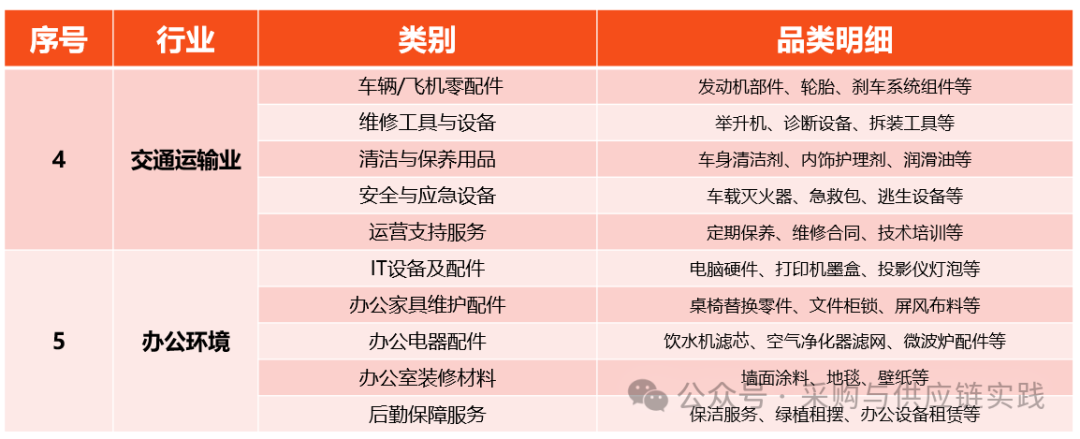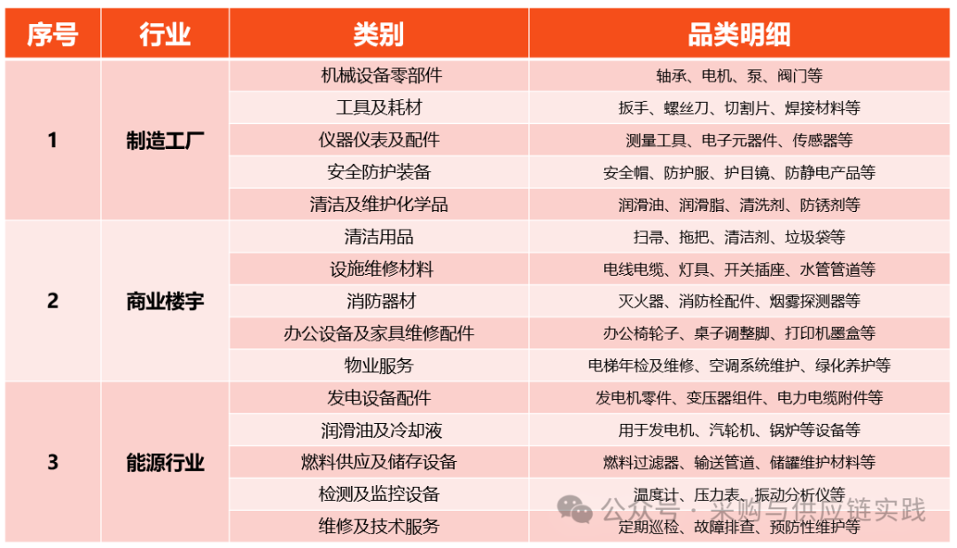 以下为MRO采购场景中比较典型的细分品类参考。
