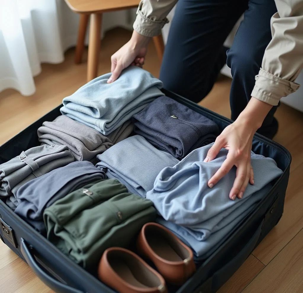 衣服鞋包:外套、上衣、裤子、裙子/羽绒服/冲锋衣/防晒衣(看旅行目的地和旅行时间)、一次性内衣裤、一次性袜子、帽子、包包、鞋子(拖鞋、平底鞋、运动鞋)、睡衣睡裤、饰品(耳环、项链、戒指等)。