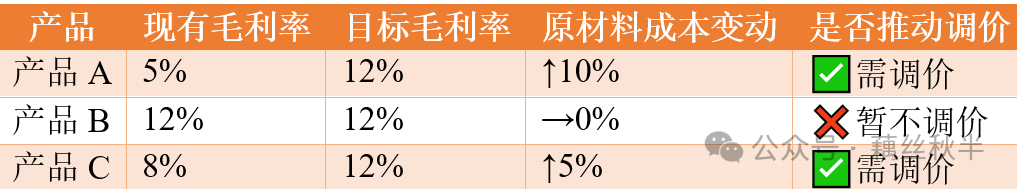 ![]() 在制造业,成本价格的调整不仅影响企业盈利,还关乎客户关系、市场竞争力。福贵的工厂每季度会进行一次价格更新,基于成本数据,结合市场行情,与客户洽谈新一季度的执行价格。但客户往往只接受原材料部分的调整,工费部分不允许改动。那么,在这种限制下,如何合理调整价格,既能覆盖成本,又能维持客户关系?📈 福贵工厂每季度进行价格调整,分为两大部分👇 今天福贵带大家深度拆解成本调价全流程!💰👇 一、为什么需要季度调价 工厂成本受原材料、汇率、外购件价格等因素影响,如果不及时调整,企业利润将受到严重侵蚀!💸 📊常见影响因素: ✅原材料价格波动(如铜、铝、钢材价格浮动) 💡如果不调整,低毛利产品可能持续亏损,影响整体盈利能力! 二、季度调价的核心逻辑 🔹1.材料成本调整:所有产品更新材料价格 📌数据来源: 📉大宗材料价格(如LME铜价、铝价、钢材市场价) 📊示例:材料成本变动表👇 📌材料成本计算公式: 调整后材料成本=∑(物料i用量×调整前单价i×(1+物料i的价格变动率)) 📊示例计算(A产品) 铜:20克,调整前铜价80元/克,价格变动率+5% 铝:10克,调整前铝价15元/克,价格变动率-2% 进口零部件A:1个,调整前单价200元/个,价格变动率+11.5% 那么,A产品的调整后材料成本计算如下👇 调整后材料成本=20×80×(1+5%)+10×15×(1-2%)+1×200×(1+11.5%)=2050元 🔹2.低负毛利产品调整:推动销售谈价 📌找出需要调整的产品: 通过毛利率分析,筛选出低于目标毛利率的产品 确认成本结构,排除工厂内部生产效率问题 📊示例:低毛利产品分析表👇 📌Push业务谈价思路: “过去三个月内,原材料成本上涨XX%,我们已优化内部生产,单只工费下降YY%,但仍面临较大成本压力。因此需要您与客户沟通,适当调整价格,以确保工厂能cover住成本。” 📌谈判策略: 长期合作但亏损的客户:需要分阶段调整,降低冲击,避免一次性大刀阔斧涨价后带来的订单急剧下滑。 三、福贵的季度调价全流程 📌第一步:数据收集 🔹采购部提供最新原材料和外购件价格 📊数据整理方式: ✅SAP数据抽取 ✅Excel透视表 ✅数字趋势可视化 📌第二步:调整价格 ✅所有产品→仅调整材料成本 📊价格计算公式: 新价格=原价格+材料成本涨幅 低毛利产品新价格=原价格+目标毛利调整额 📌第三步:与销售部门协作 福贵提供成本上涨的详细数据,计算预期销售价格,并按权限报多方领导审批;销售经理了解客户接受度,与客户谈判价格调整方案,及时反馈市场价格变动信息。 四、关键因素 🔹精准的数据支持(材料、汇率、外购件价格) 📌成本调价是科学+策略并行的过程,不只是财务的事,而是全公司配合的任务! 点晴模切ERP更多信息:http://moqie.clicksun.cn,联系电话:4001861886 该文章在 2025/3/24 18:29:08 编辑过 |