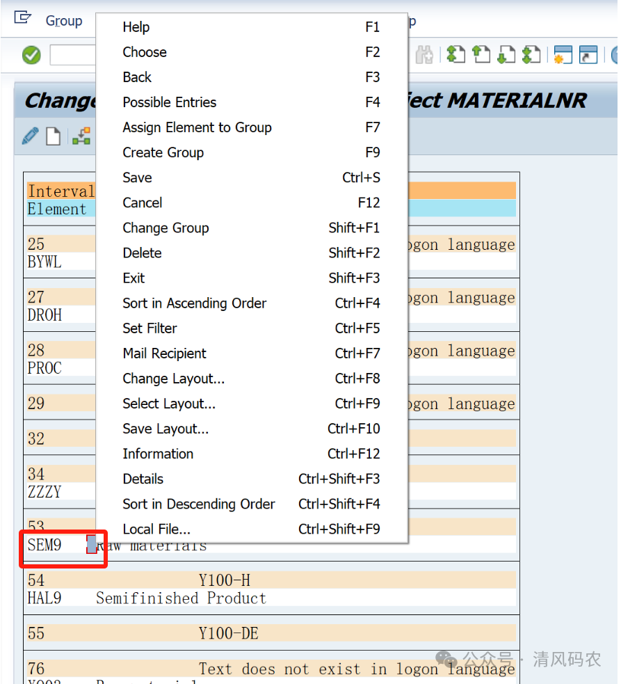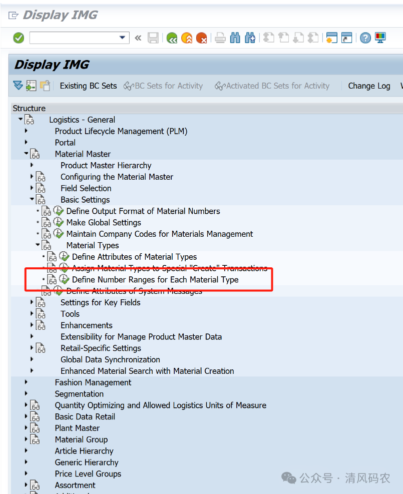 From to: 指定今后原材料类型的物料的号码段虽然是外部指定号码,一般是可以随便指定的(一般也会指定会A-ZZZZZZZ),但有时候也可以根据特定需求指定一定的规则范围,比如例子上的MAT00001-MAT99999.如果我们在新建物料时候没有遵循此规则,系统一样会提示错误新建完组以后,我们需要将物料类型分配到这个新建的组选中事先定义的号码段。因为是外部给号,所以是第二列的数字,如果是内部给号,就会出现在第一列中。定义了个新的组和号码段,ext不勾选,也就是让系统自动编号,并给予了号码范围。最后我们再来一个发散性思维的思考,不同类型物料使用同一个号码段组可不可以,会引发什么问题吗?首先从技术上来说,技术上是允许一个号码段供多个物料类型使用,但是实际应用上基本不会使用,如果企业在物料主数据管理中让不同类型的物料共享同一个号码段组,可能会产生一系列管理、运营的问题。