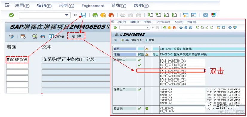 备注:默认带出金额是收货金额,不是采购订单上的当前净价计算的金额。 不同公司财务结算要求不同,在很多项目中财务会要求发票金额必须按收货金额结算,但采购部门定价的业务要求是按凭证日期定价,不能按收货日期定价。 基于以上两点业务要求的情况下,就无法通过配置实现既满足财务又满足采购的业务要求,这时候就需要通过增强来满足这业务需求。 解决上面业务需求的增强实施方案: 针对上面业务需求,下面详细介绍通过实施二代增强方的式来满足这样业务需求的实施步骤。 增强名:MM06E005 出口:EXIT_SAPMM06E_012 具体操作步骤如下 1.创建增强项目(CMOD)