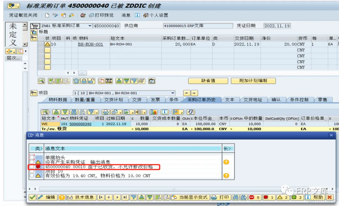 [点晴模切ERP]SAP系统MM模块项目实施中常用增强之一:采订单收货后不能修改价格