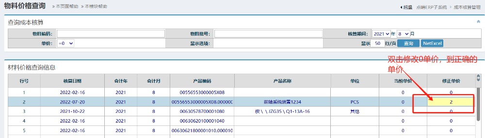 单价补充完整后,重新进行 采购核算--》生产核算。