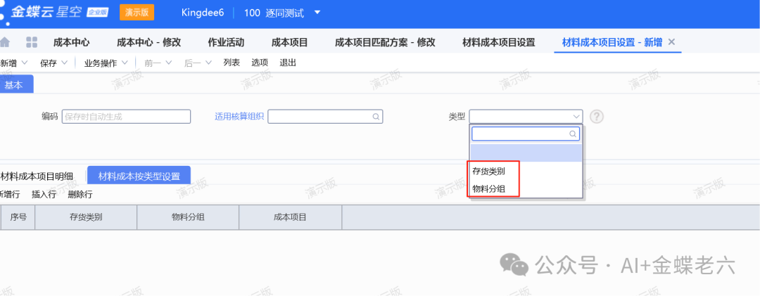 - 主要针对成本项目为直接材料和间接材料的项目进行进一步的成本细分,主要有按存货类别和物料组进行划分,这块设置也比较考验企业的成本管理能力,一般中小型企业管理水平不到位的不建议进行进一步细分。