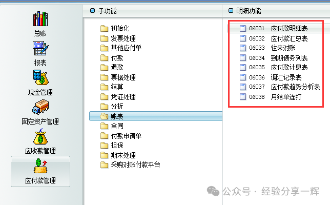1.手动核销:选择供应商,勾选需核销的(采购发票/应付单)和对应的(付款单/退款单); 2.自动核销:直接(应付单)生成(付款单)自动核销;或者可按(业务编号)或(金额)匹配条件自动核销; 3.特殊核销:预付定金核销,(预付单)与(应付单)核销; 4.核销方式:(按单核销)一张(付款单)对应一张(应付单);(按金额核销)按供应商应付单,多笔合并付款; 账表(应付款报表)