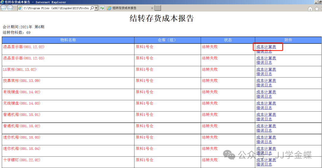 核算结果查看与处理:计算完成后,可以查看计算报告,从中了解系统是如何计算成本的。若运算过程中物料的计算出现错误,可以在报告中看到错误信息,根据系统列出的错误原因进行处理即可。根据成本计算表中显示的错误提示进行相应的处理,然后再重新存货出库核算操作,直到提示核算成功。