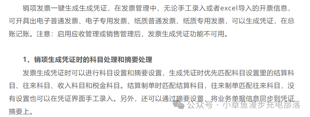如果启用销售管理或者应收管理,发票管理不支持生成凭证,因此种场景涉及往来入账较多,业务逻辑较复杂,建议使用应收管理生成凭证。