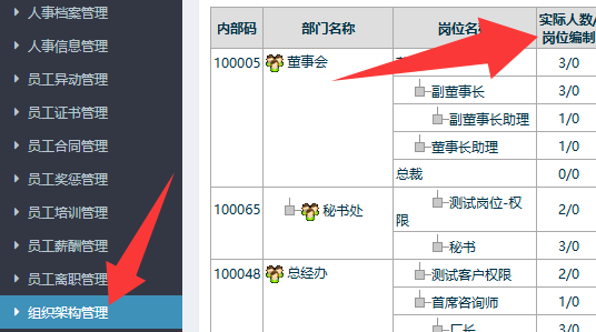 3、检查是否审核节点的岗位上存在多人,前往人力资源管理-人事管理-组织架构管理,检查该岗位,确保岗位上只有一人
