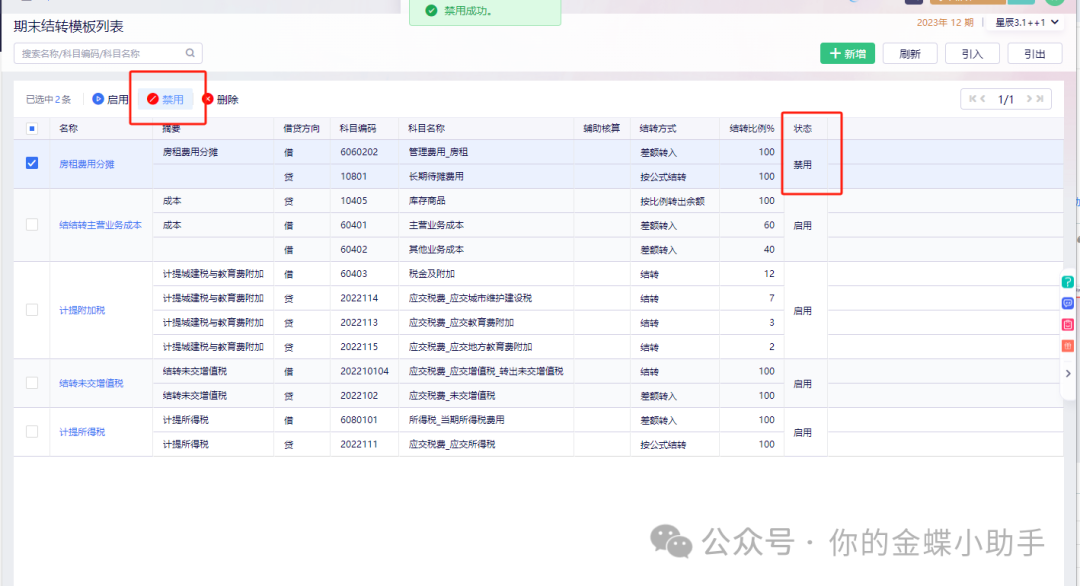 温馨提示:一年到期后要禁用这个不需要的模板,或者月末不在勾选生成凭证,即可。打开模板列表: