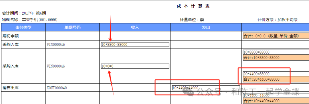 那么加权平均后的单价就是88000/10+10)=4400块的单价,那出库成本单价就是4400元了,剩下的成本单价也是4400,通过这个成本计算表,我们就能知道是什么单据,那个单据号码的单没有填入库单价,去查询单据填了单价后再进行核算就会是成功的