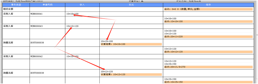 3.先进先出法 3.1 计算方法:出库成本单价=按单据日期先入库的先发出 3.2计算结果:6.5号出库取1号的入库成本的10块,6.15出库取2号入库的成本12