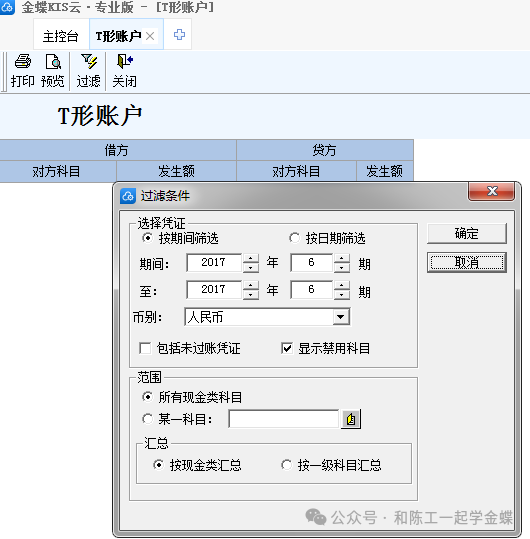 3. 月底指定T型账 3.1 打开T形账户,选择期间,也可以一次性指定整年的