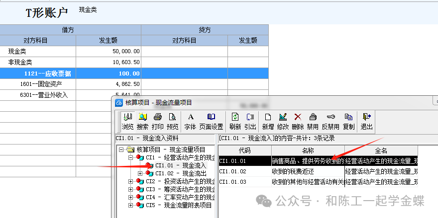 3.3 选择具体的科目右击鼠标->选择现金项目->然后选择具体的现金项目(左边借方的都是现金的流入,右边贷方的都是现金的流出),需要一个个科目单独去指定