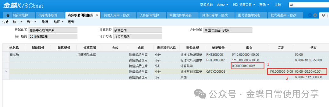 关账取的出入库序列是打上“库存更新标识”的记录,而物料收发报表取的是单据上的分录,不检查该标识。