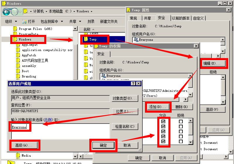 开放目录C:\WINDOWS\temp的everyone访问权限