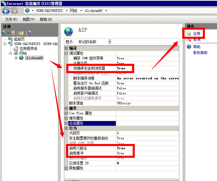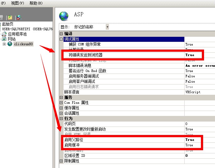 2、检查服务器上的IIS是否已开启父路径和缓存支持,必须开启。在服务器上进入IIS的管理界面: