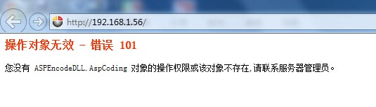 点晴永久免费OA系统安装后提示:操作对象无效错误101,您没有ASPEncodeDLL.AspCoding对象的操作权限或该对象不存在请联系服务器管理员