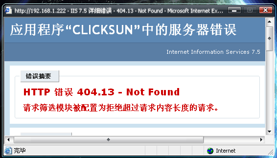 2003 自带的IIS6.0默认限制上传大小限制为200K,下载限制为4M,因此出现上面的问题,解决如下: