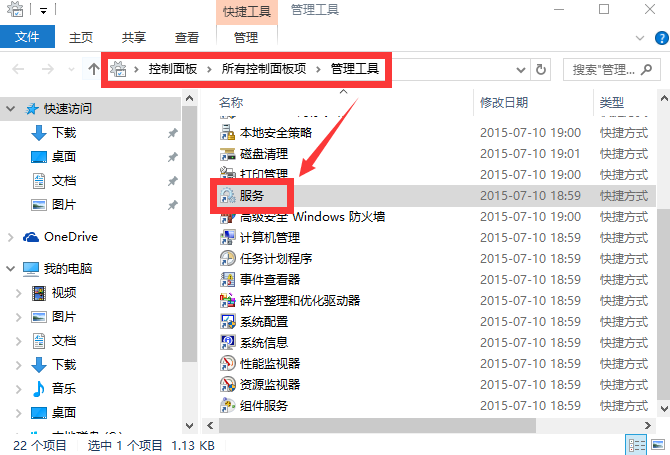 方法为打开Windows-》开始-》控制面板-》管理工具-》服务:
