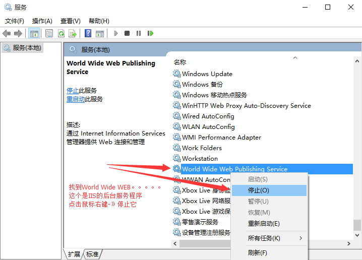 进行本操作前,先务必在Windows系统服务中停止IIS服务,彻底停止IIS的运行。