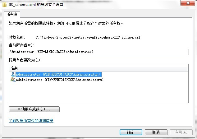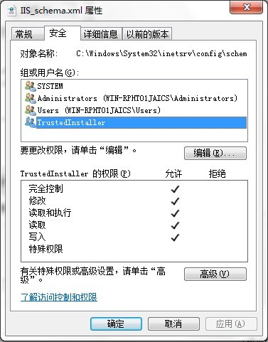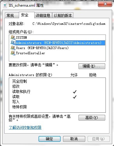其他说明:将文件IIS_schema.xml的权限还原(这一步不是必须的)