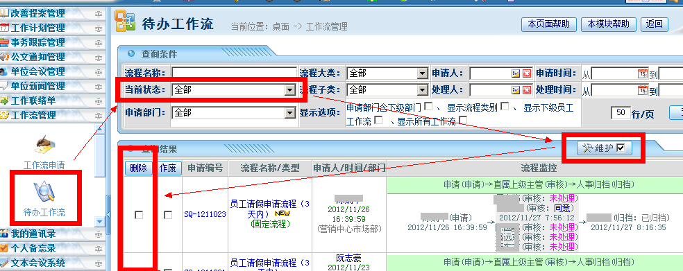 比如说:一条请假申请流程下来,领导审批后,归档人归档后,发现与实际情况不符合,要删除这条请假记录,目前系统在待办工作流有一个作废功能,可是用了作废后,归档人在人力资源管理中统计所有申请信息的时候,这条记录依然存在,这要怎么办啊?