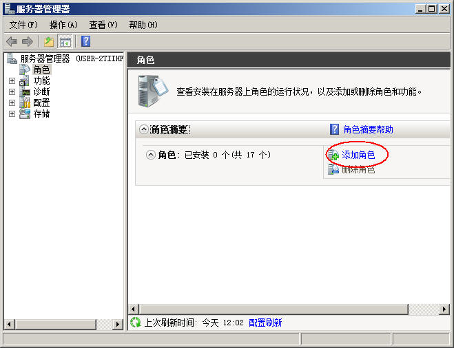1、在空的服务器中,点击服务器管理器(或者鼠标右键我的电脑,打开管理),添加角色: