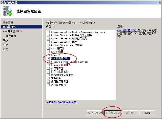 2、添加服务器角色,选中“Web服务器(IIS,点击下一步: