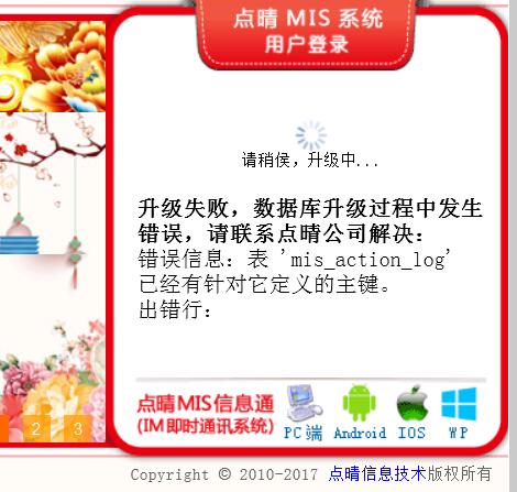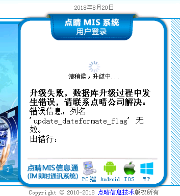 ![]() ,这是个别用户出现的情况:服务器时间严重偏离标准时间,点晴OA升级包是根据用户服务器安装升级包时的时间与点晴升级服务器发布升级包的时间差来判断是否需要升级的,如果用户服务器的时间与标准时间出现一天以上的偏差时将导致升级判断失败,从而不断提示升级。解决办法:将安装了点晴OA的服务器时间校准后重新升级一次即可。终极解决办法: