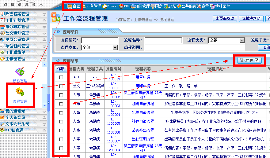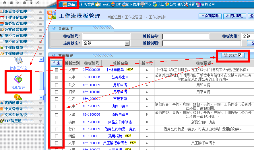 系统预置的考勤类表单模板不允许作废(此模板经过特殊设计,可以实现与其他模块信息互通,必须保留,此类模板只有管理员才能看到,删除框是灰色不可选状态),预置的流程可以作废,以后有需要时管理员可以另行创建;