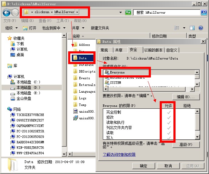 a.hMailServer的安装目录中data文件夹权限要设置为everyoneIIS来宾完全访问权限;