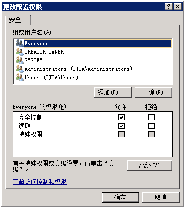上面所说的权限是需要设置给everyoneIIS来宾账号,而不是其他账号!