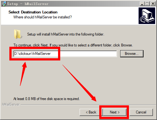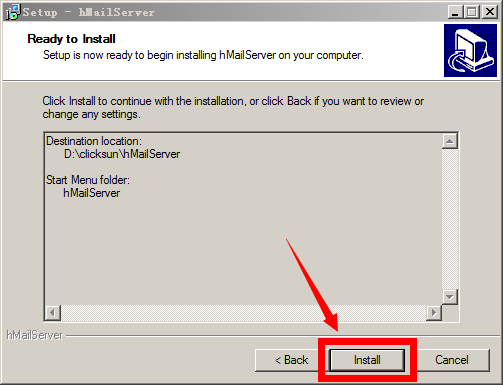直接使用点晴MIS系统安装程序内置hMailServer安装包,或者使用以下指定地址安装包:http://www.clicksun.com.cn/download/hmailserver5.3.rar,以免出现版本不符的情况,下载后安装时务必将程序安装在点晴OA系统clicksun目录下,正常情况下安装路径为:“D:\clicksun\hmailserver”。