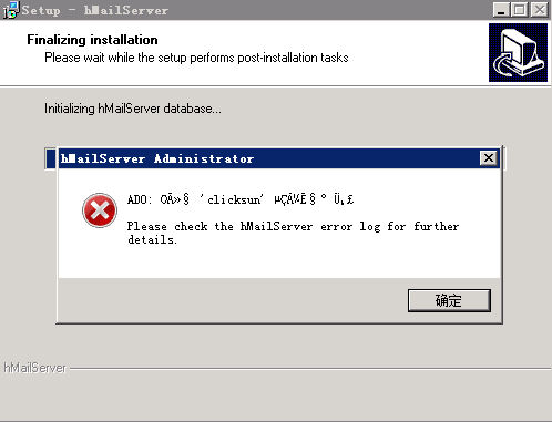 Windows Server 2008 R2 64位 用半自动安装包  安装到HMAIL的时候报错: