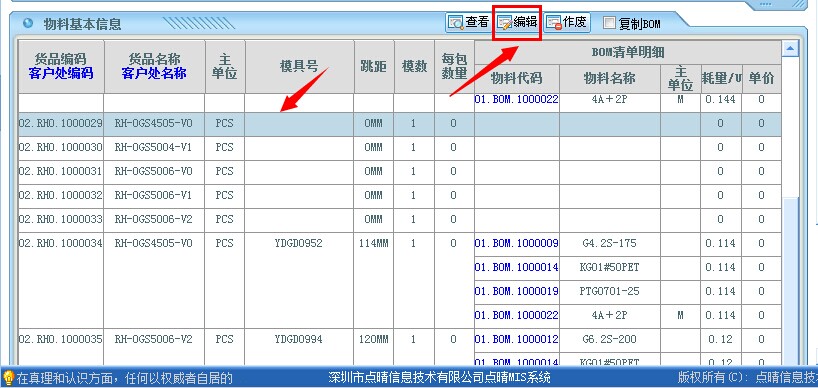进入编辑页面,填写相关资料即可。必填资料有:跳距,模数,BOM材料,BOM料标准宽度,替用范围。