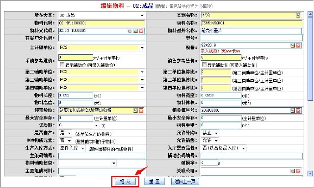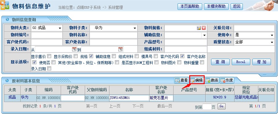 点晴模切ERP物料基础资料维护—编辑成品/原材料