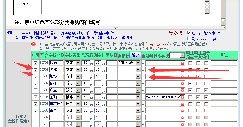 ![]() 上面的SON02、SON03就对应着自定义表单中的SON02、SON03: