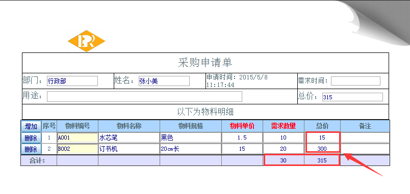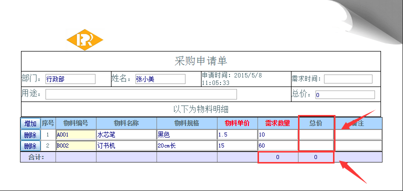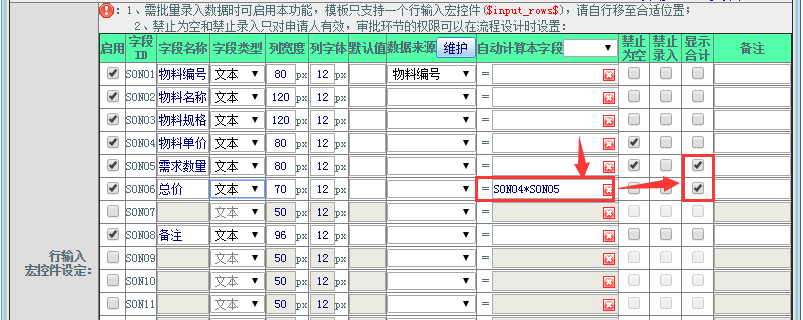 模板设置了运算规则以及汇总的条件,但在申请时未显示效果;如图: