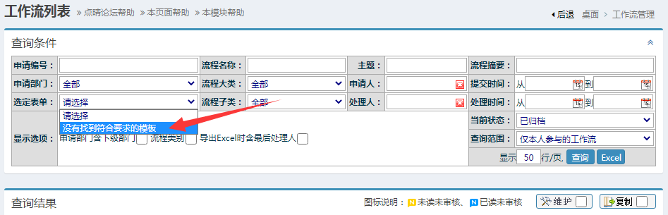 主表字段设置了允许导出字段到Excel的模板,此模板表单名称才会出现在上面工作列表查询页面的“导出表单”中。