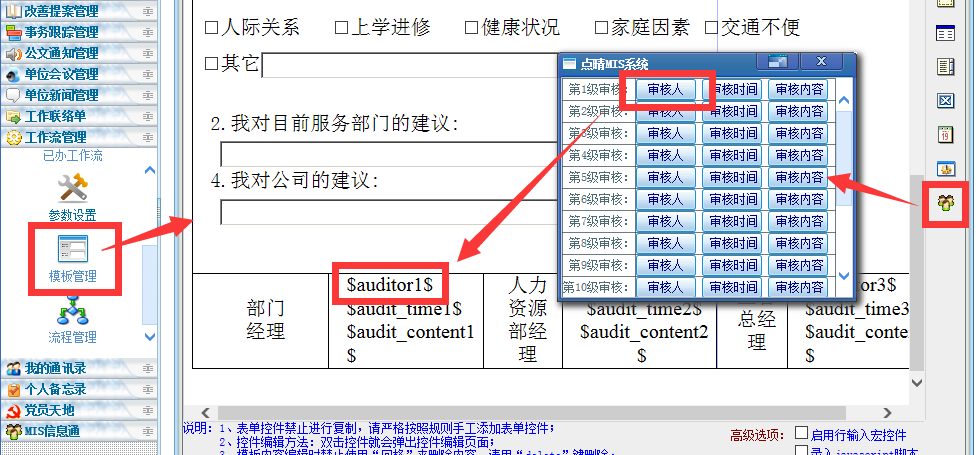 先手工在白纸上签上自己的姓名,然后用扫描仪或手机将签名截取下来,将这个手写签名截图上传到以下位置待用: ![]() 然后在工作流表单模板的审核位置插入审核人,以后就会看到审核人自动变成这个手写签名了: ![]() 以后审批时,就会看到上面的$auditor$会变成手写签名了: ![]() 该文章在 2019/1/9 18:56:41 编辑过 |