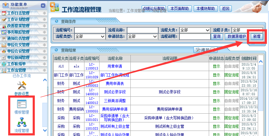 :点晴OA工作流类别如何删除、作废、增加和维护?![]() :进入工作流管理的模板管理和流程管理中,点击新增或维护,就会看到维护图标,然后维护即可:![]() ![]() ![]() ![]() 该文章在 2015/10/23 16:54:00 编辑过